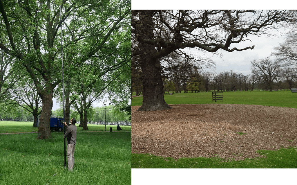 Applying compost tea and mulching of vulnerable trees